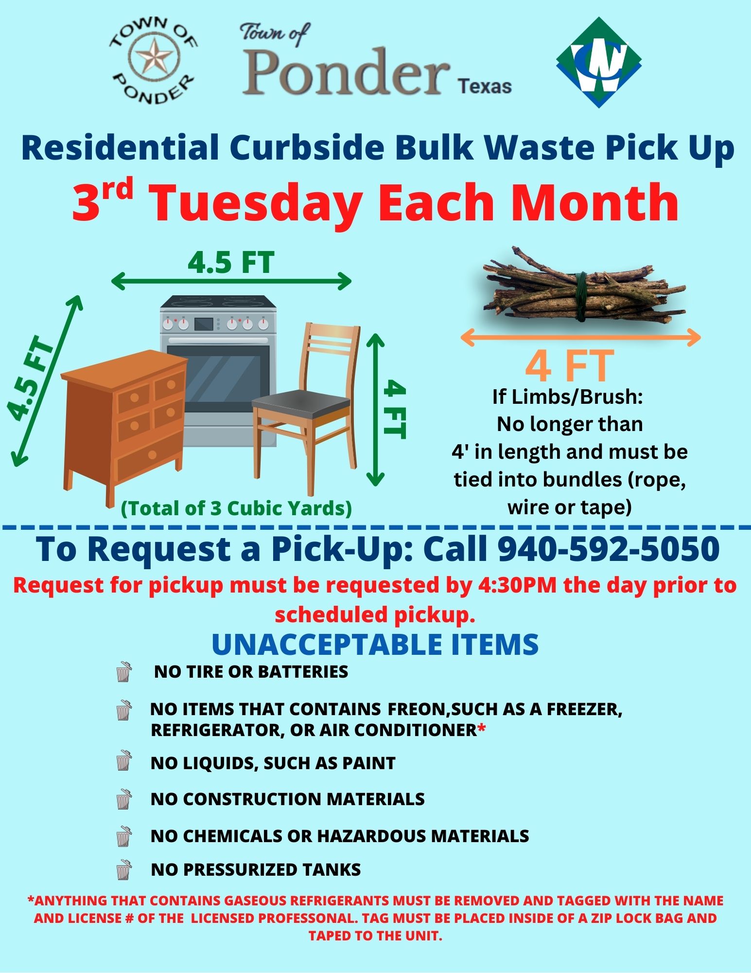 As many residents know, the Town of Ponder operates under a franchise agreement with Waste Connections for solid waste services. The contract was recently updated, and there are a few important changes residents should understand.